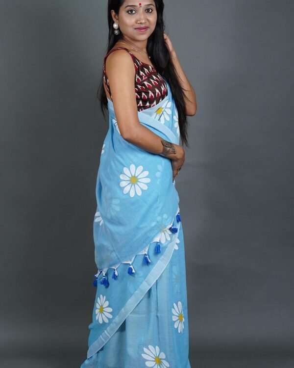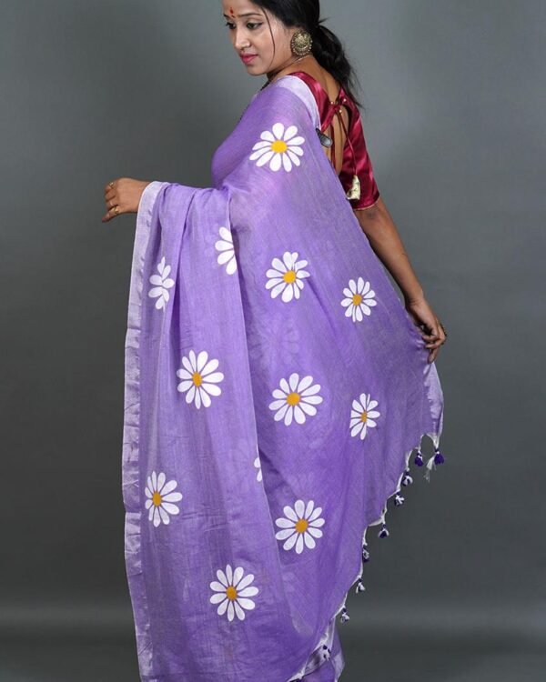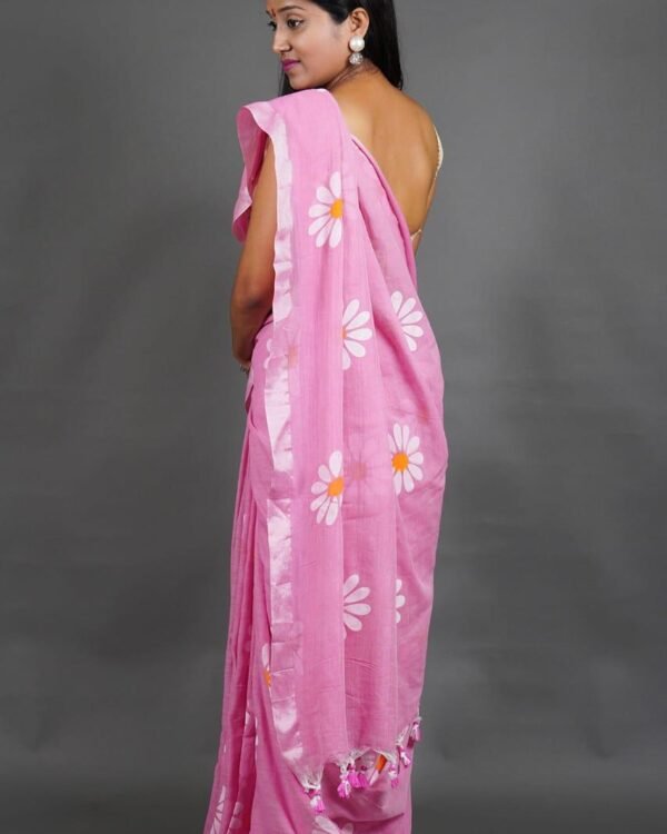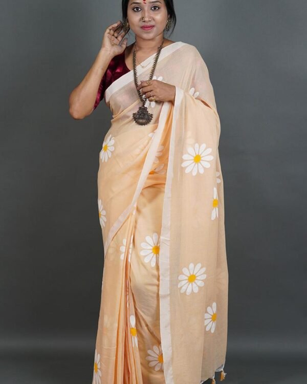 Tath Hand Waving White Brown Hard Inchi Par Saree