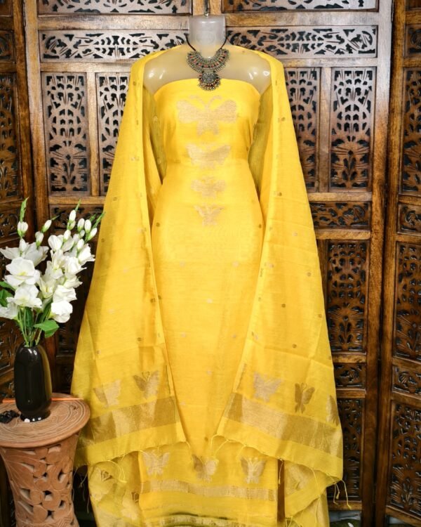 Batterfly Yellow Unstitched Jamdani Kurti Set
