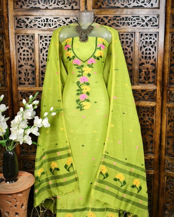 Kolka Bottol Green Unstitched Jamdani Kurti Set