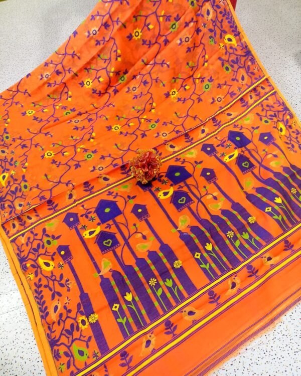 Ghar Pakhi Soft Orange Jamdani Saree