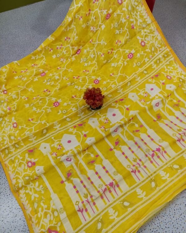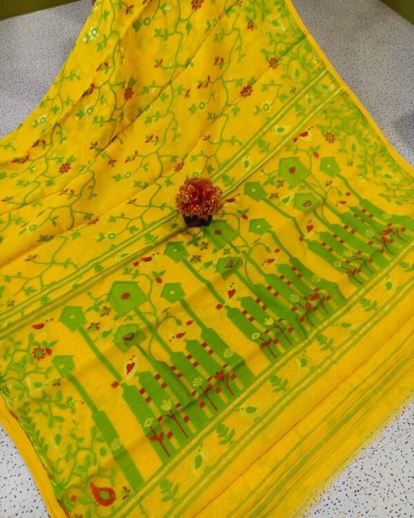 Fulljhuri Lemmon Yellow Soft Jamdani Saree