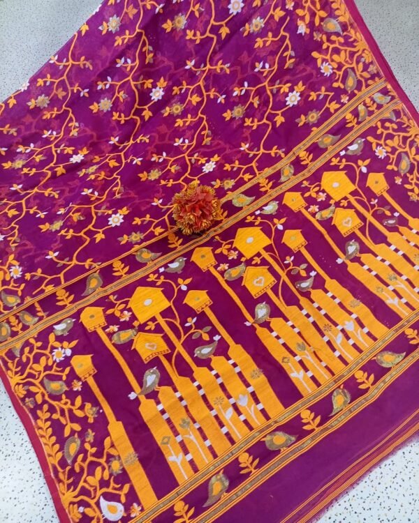 Ghar Pakhi Soft Majenda Jamdani Saree