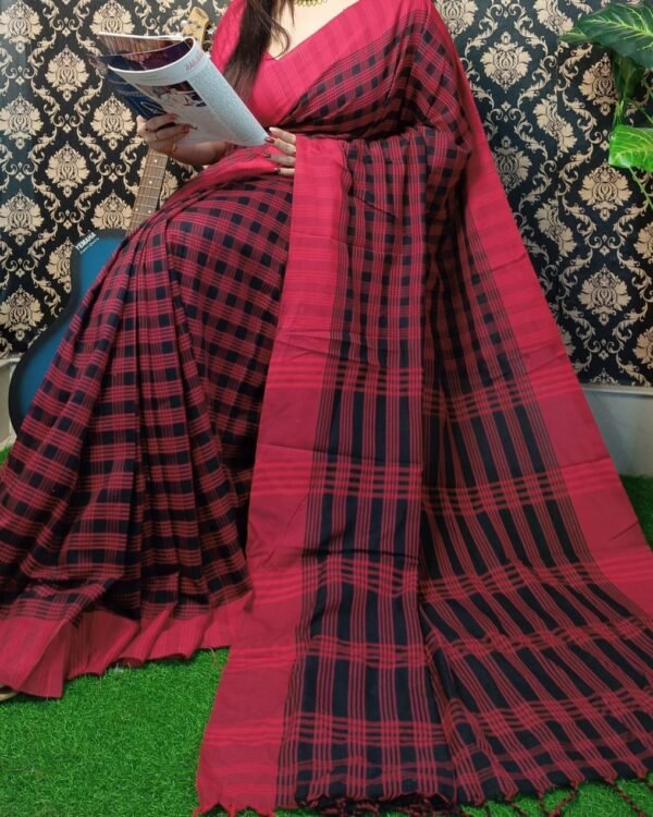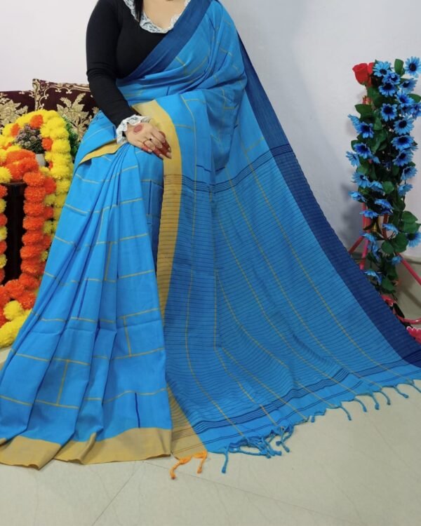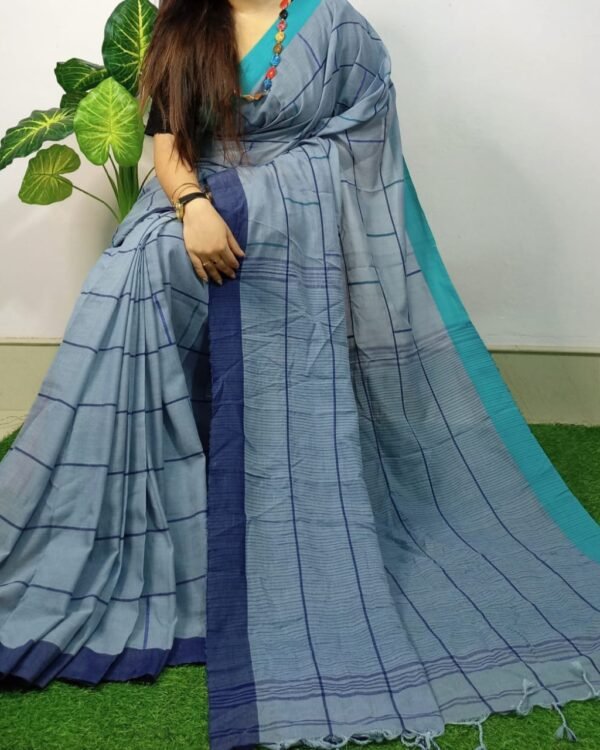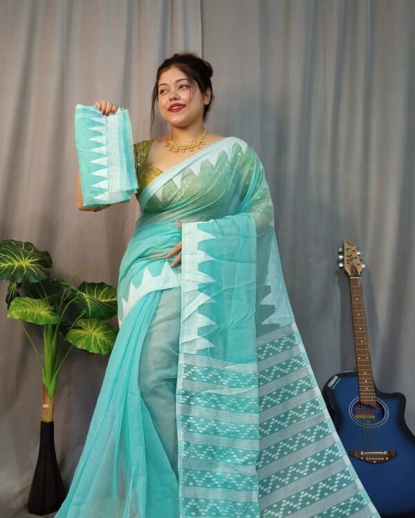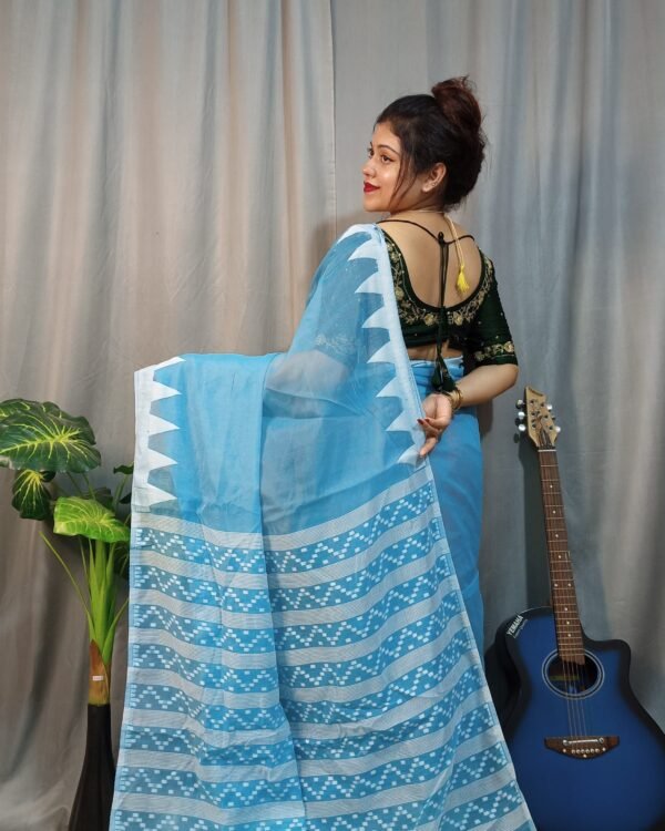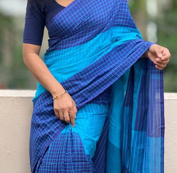 Ikkat 3D Soft Pink Blue Khadi Saree
