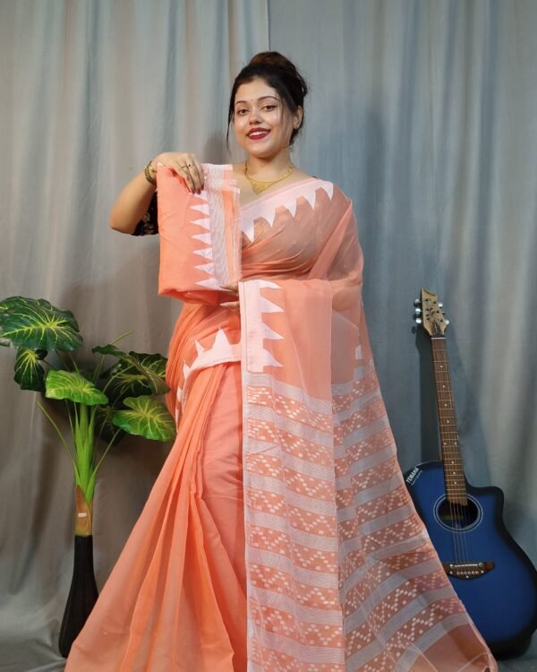 Ikkat 3D Soft Cream Orange Khadi Saree