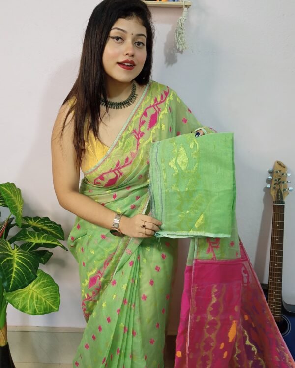 New Bd Soft Bottol Green Yellow Jamdani Saree