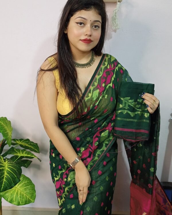 Chakro Jori Soft Bottol Green Jamdani Saree
