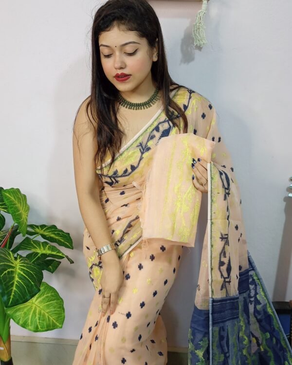 Jashmin Soft Cream Pink Jori Jamdani Saree