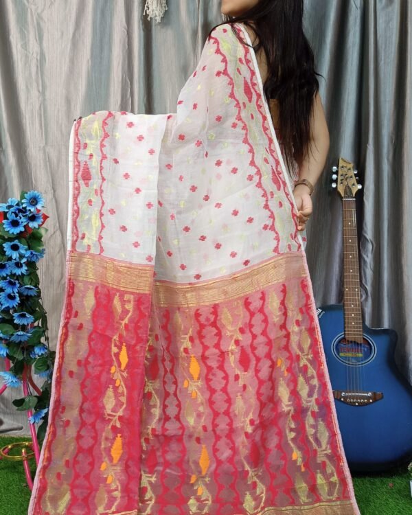 Par Kolka Soft Ghiye Red Jamdani Saree