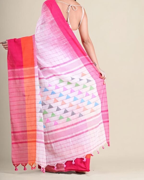 Borfi Ikkat Cotton White Pink Soft Saree