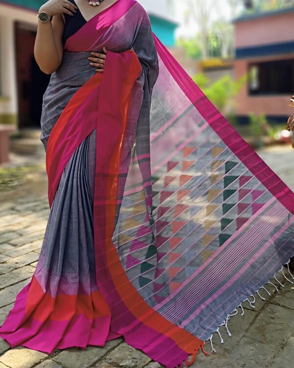 Mahapar 3D Cotton Grey Blue Pink Soft Saree