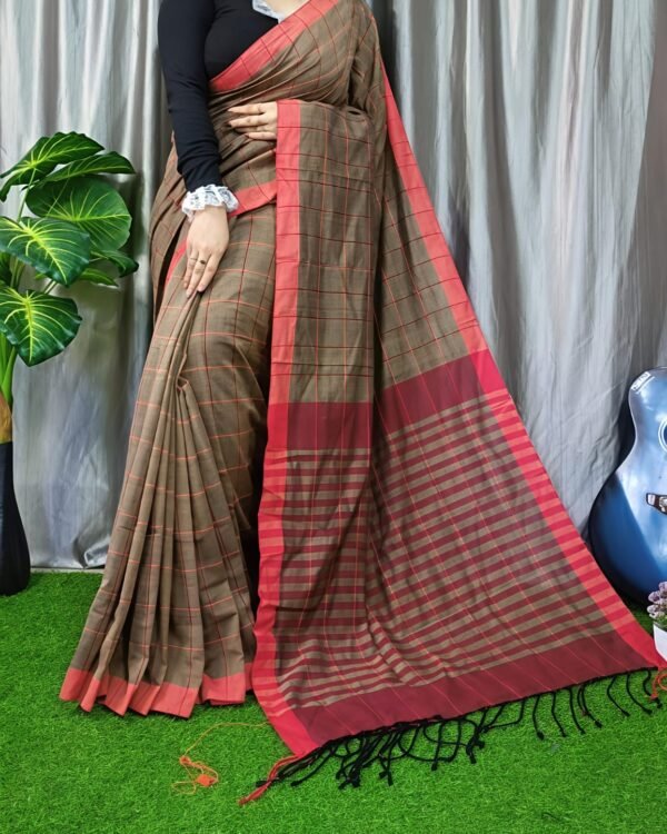 Manjuri Chek Cotton Brown Soft Saree
