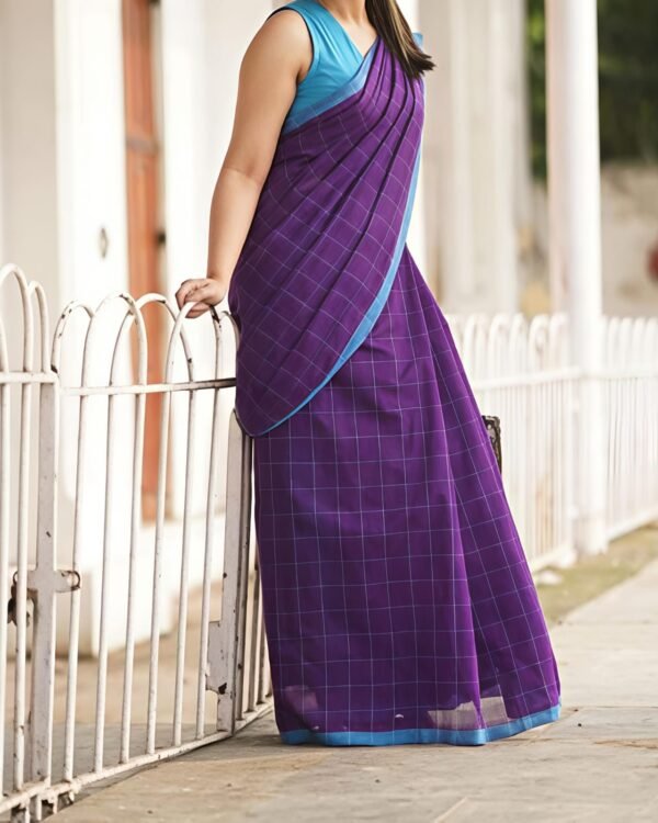 Manjuri Chek Cotton Purple Soft Saree