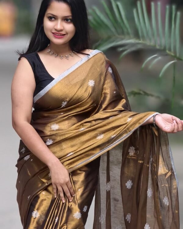 Tishu Cotton Brown Soft Saree