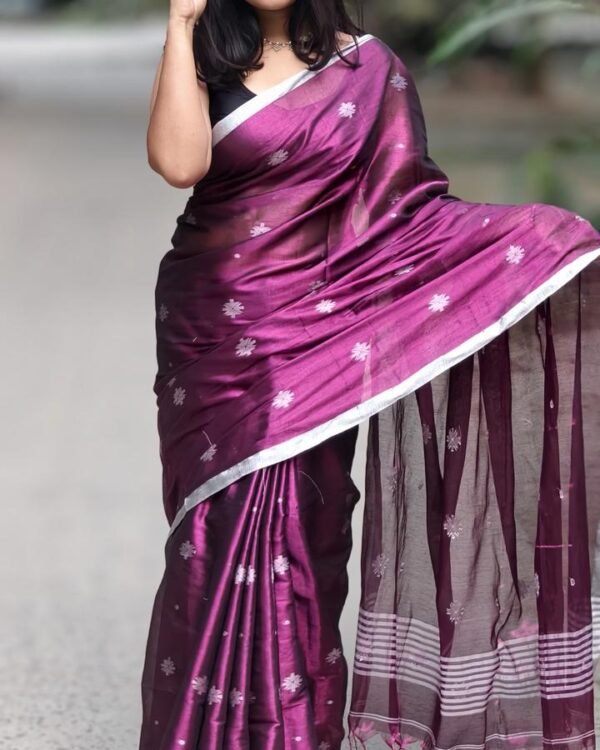 Flower Jori Soft Deep Purple Jamdani Saree