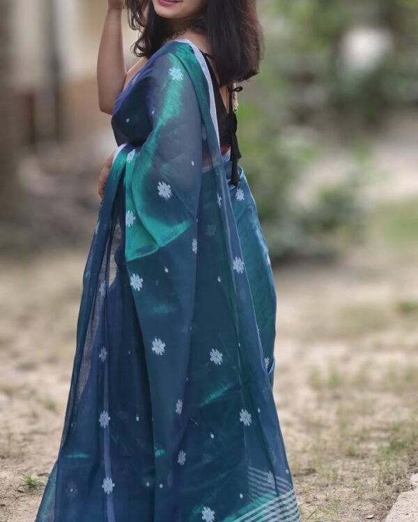 Karat Buti Soft Deep Blue Jamdani Saree