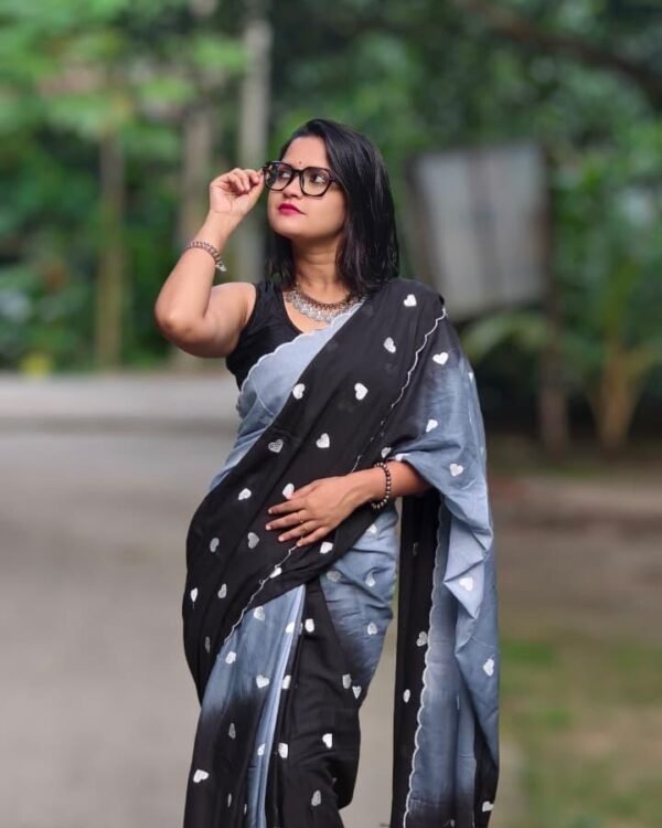 3D Mal Cotton Black Grey Soft Saree