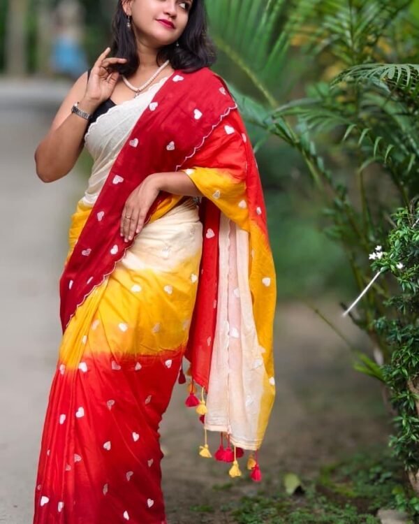 3D Mal Cotton White Red Yellow Soft Saree