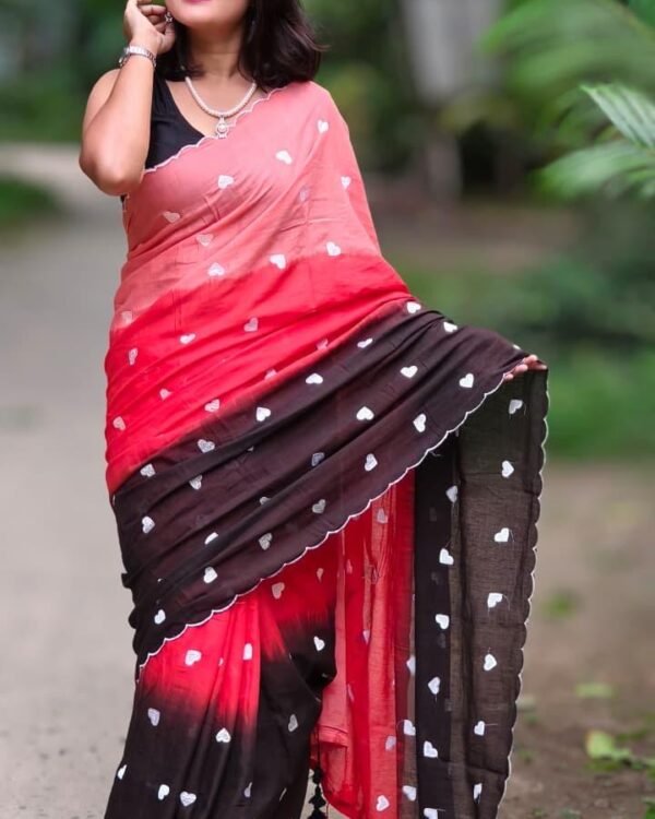 3D Mal Cotton Red Black Soft Saree