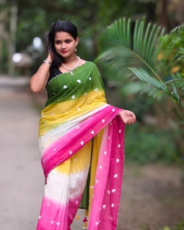 3D Mal Cotton White Pasta Pink Yellow Soft Saree
