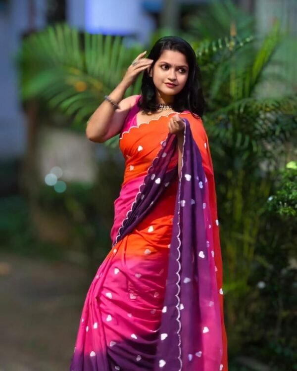 3D Mal Cotton Pink Orange Purple Soft Saree
