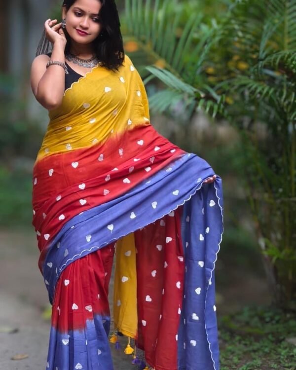 3D Mal Cotton Red Yellow Blue Soft Saree