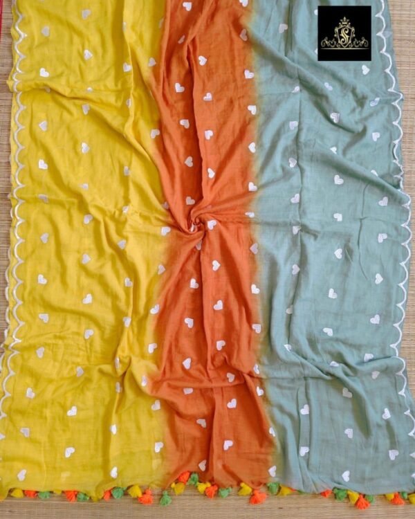3D Mal Cotton Yellow Orange Soft Saree