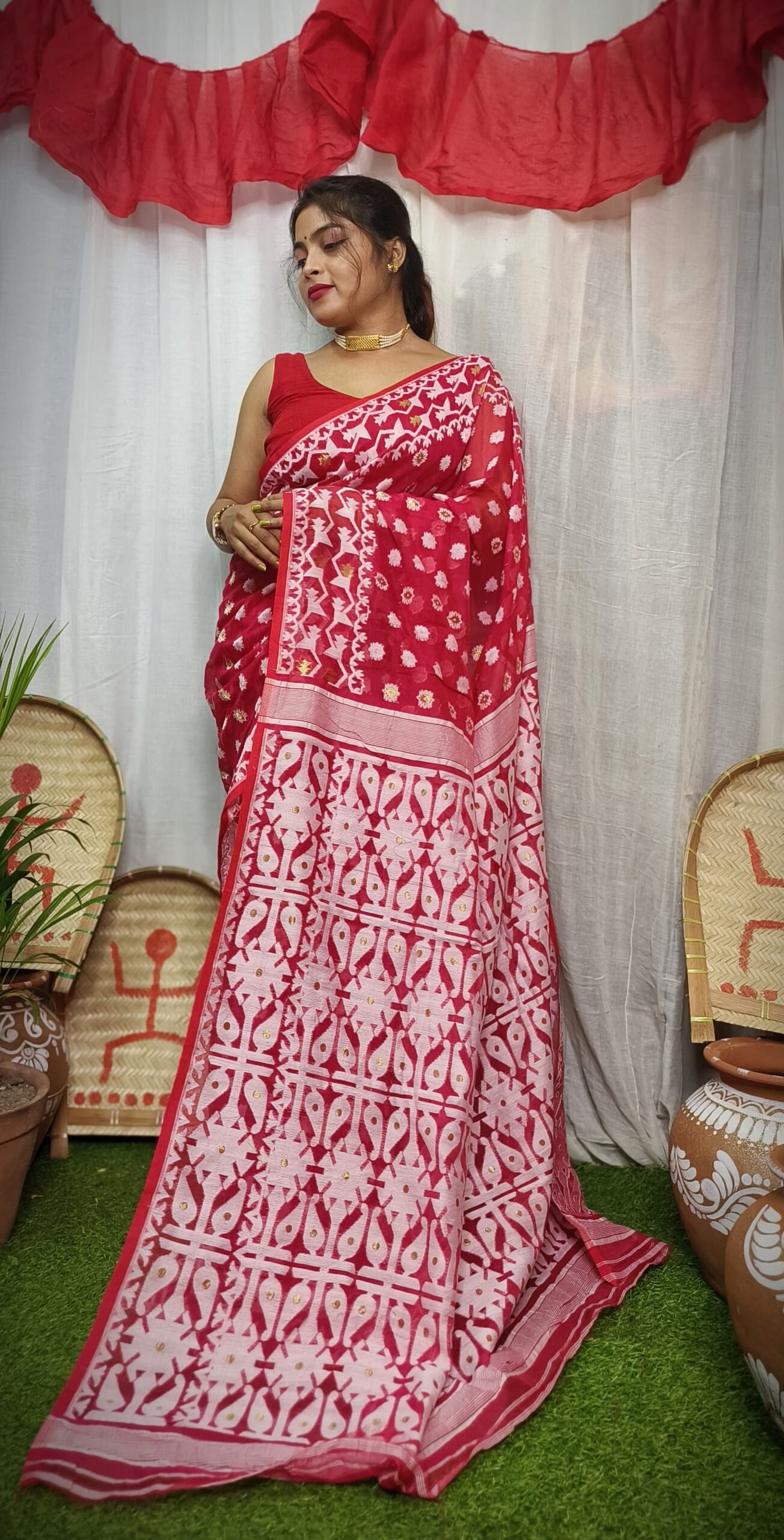 Body Red Soft Allover Jamdani Saree