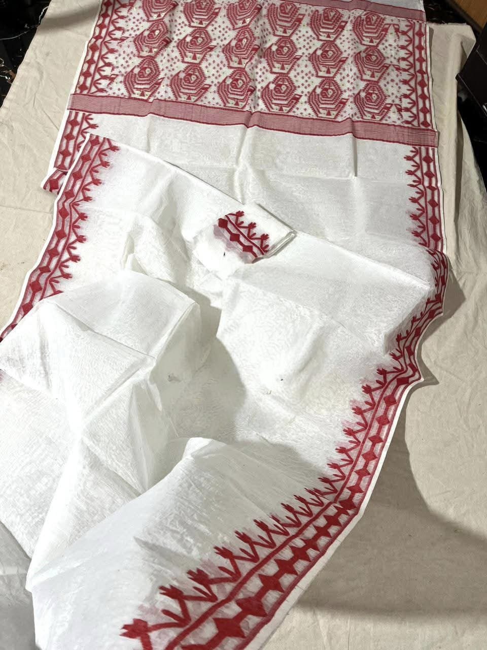 Be the first to review “Bady Plain Soft White Red Jamdani Saree” Cancel reply