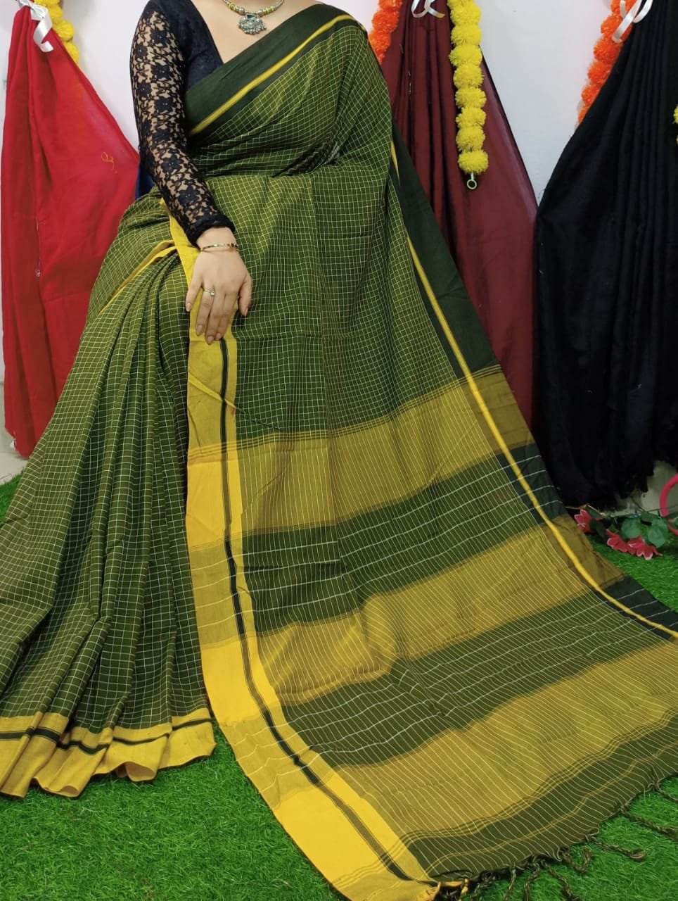 Be the first to review “Border Mini Chek Pasta Soft Cotton Saree” Cancel reply