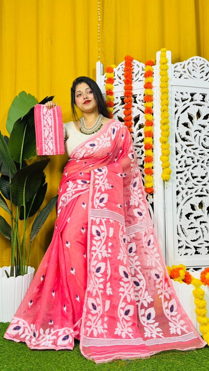 Excluclosive Banana Leve Borfi Design Jamdani Saree