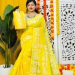 - Handle with Caution:Â While wearing the saree, handle it with care to avoid snagging or tearing the delicate fabric. Avoid contact with rough surfaces or sharp objects that may cause damage.