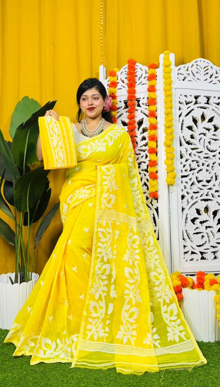 Dat Par Soft Yellow Jamdani Saree