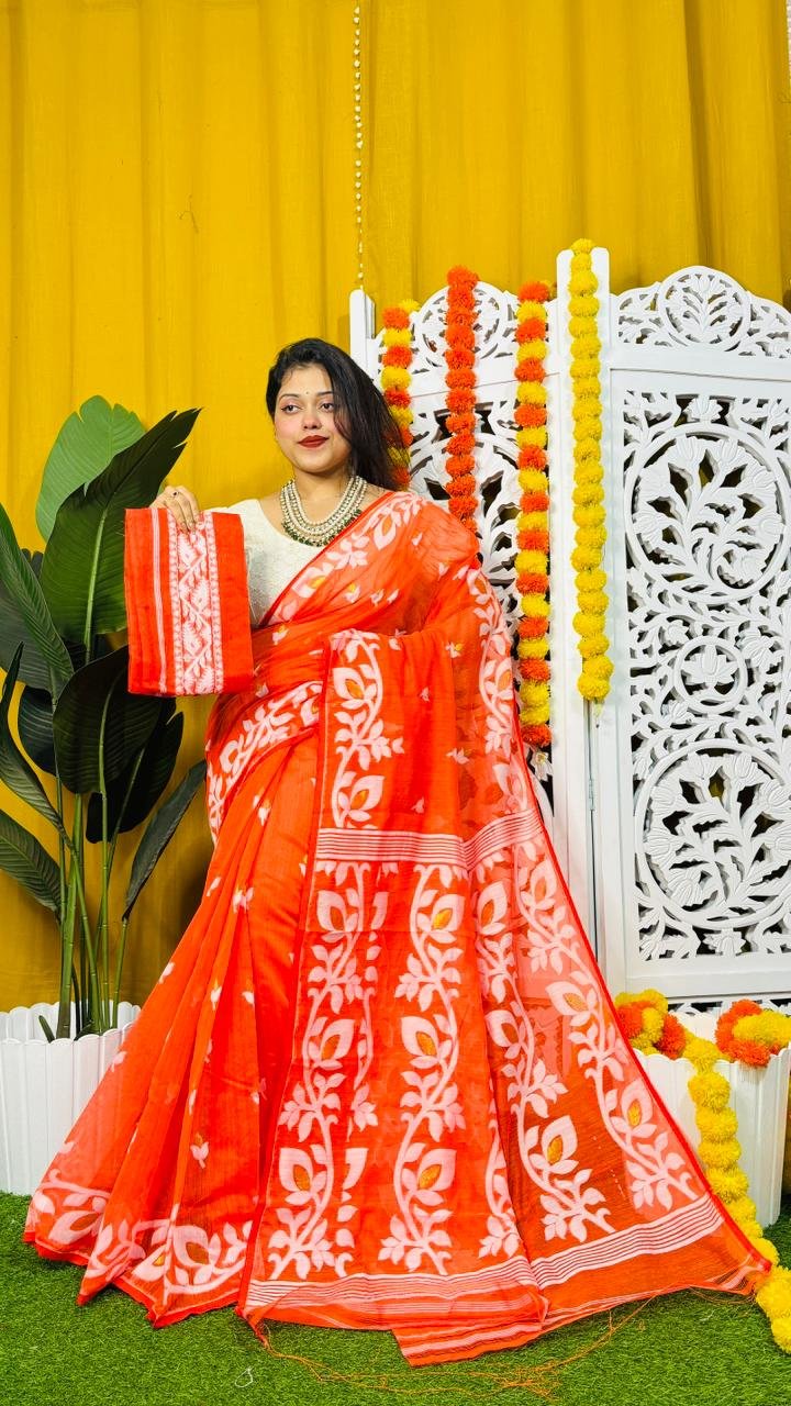 Exclusive Lata Design Orange Soft Jamdani Saree