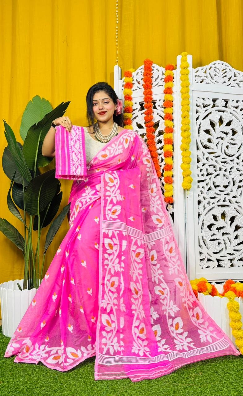 Exclusive Lotas Pink Borfi Design Jamdani Saree