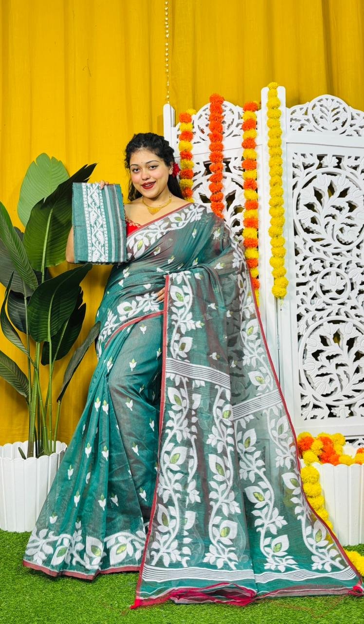 Exclusive Lata Design Raja Green Soft Jamdani Saree