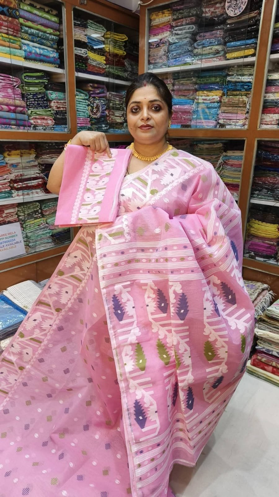Pink Swan Dhakai Jamdani Saree