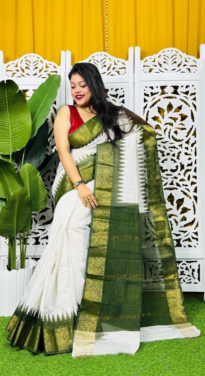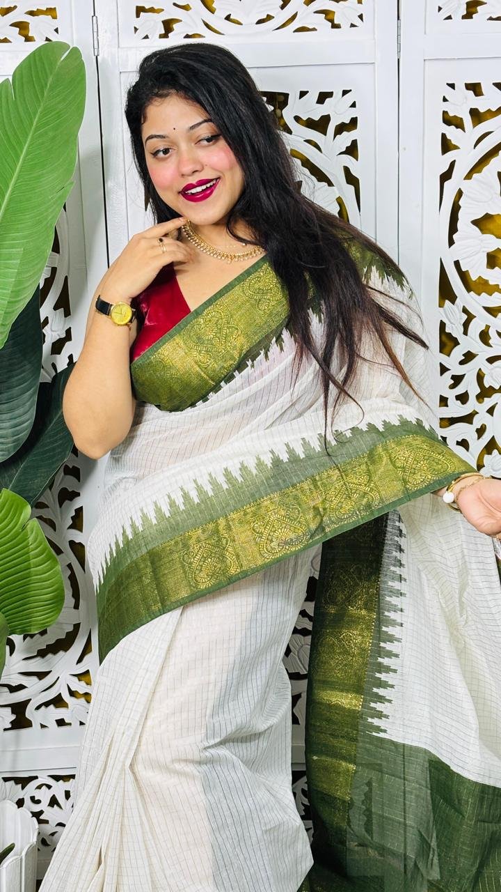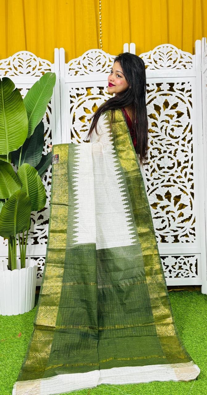 Madhurai Soft White Pasta Cotton Saree