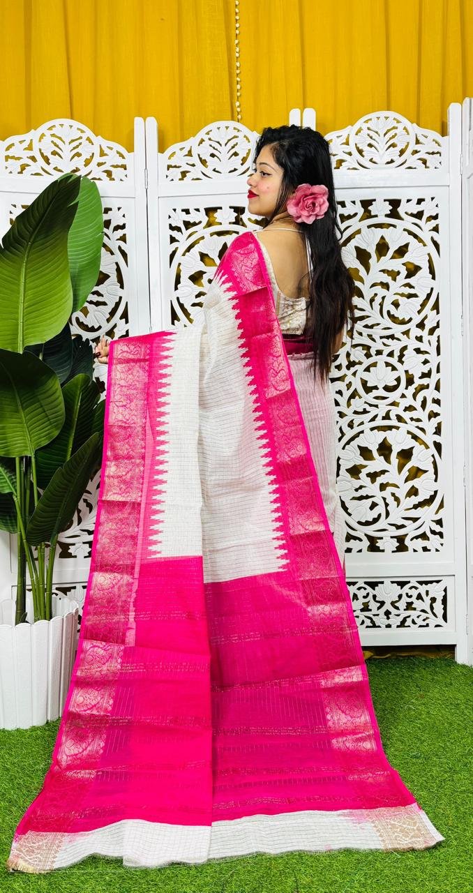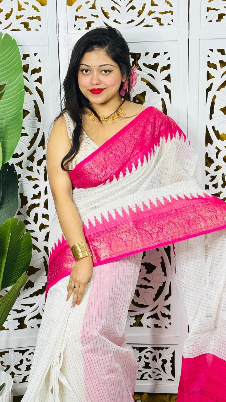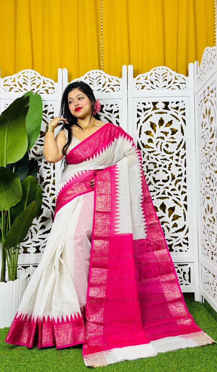 Madhurai Soft White Rani Cotton Saree