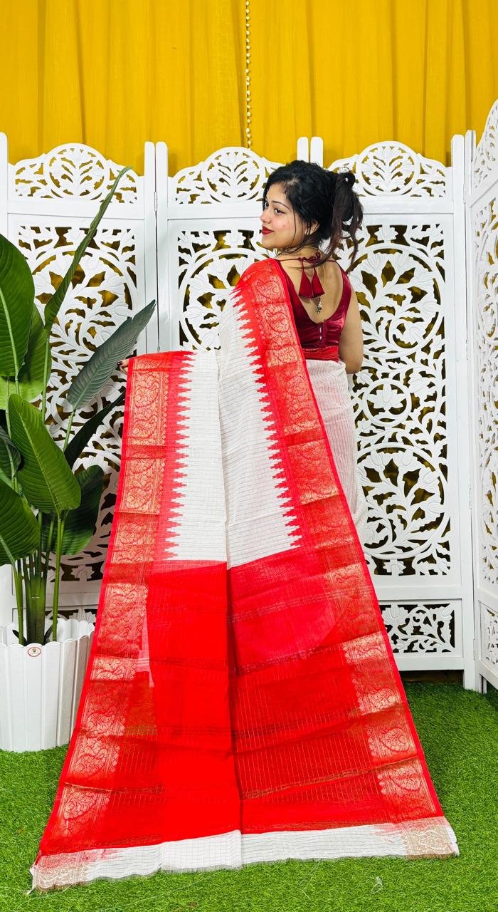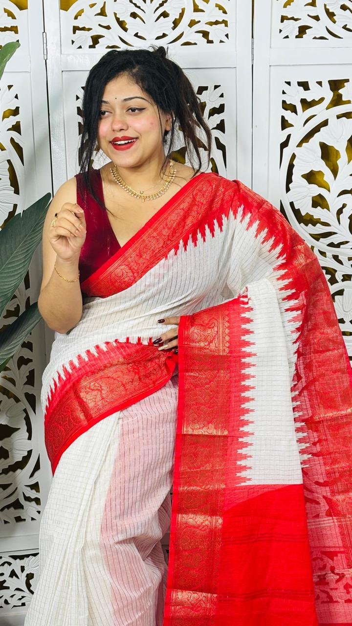 Madhurai Soft White Red Cotton Saree