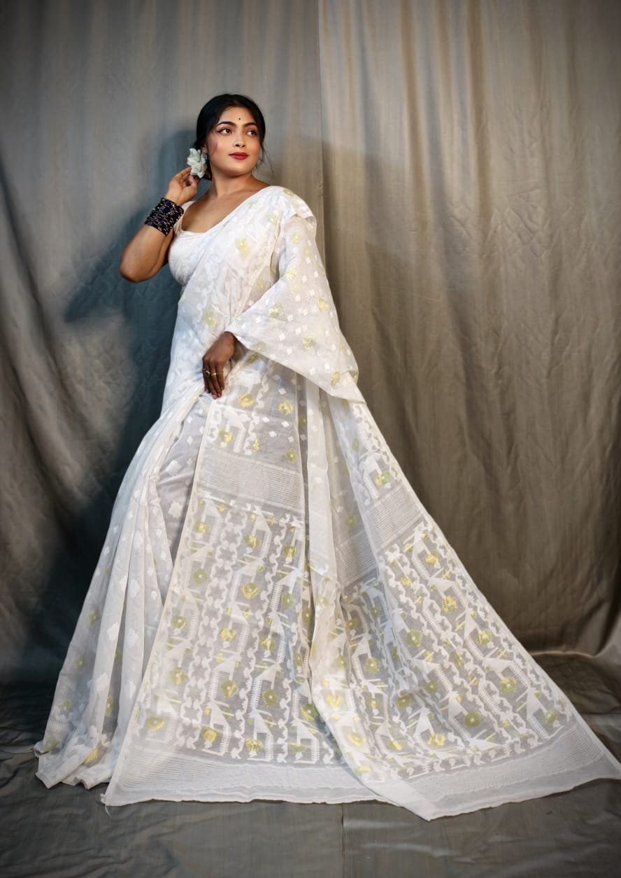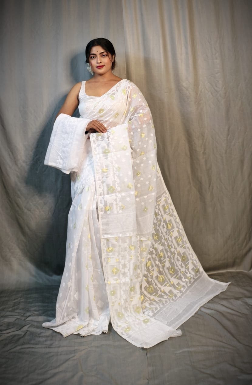 Nrittanjoli Allover White Soft Jamdani Saree