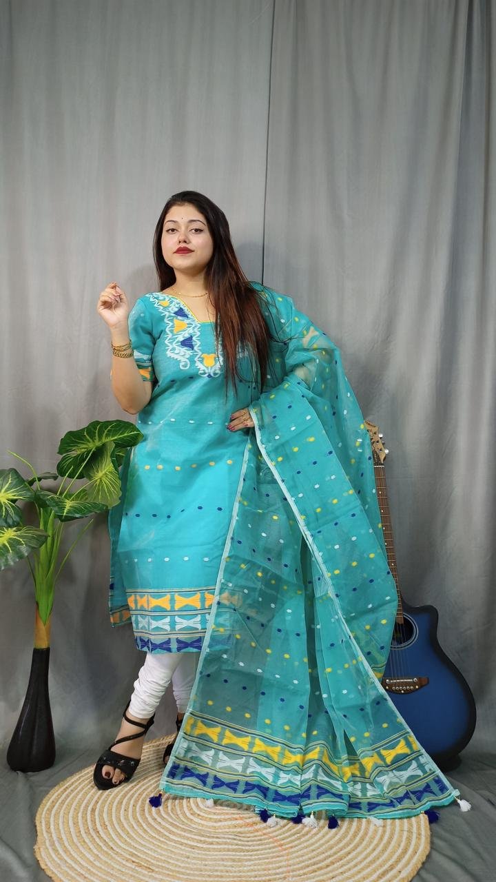 Flower Duel Tone Cotton Unstitched Jamdani Kurti Set