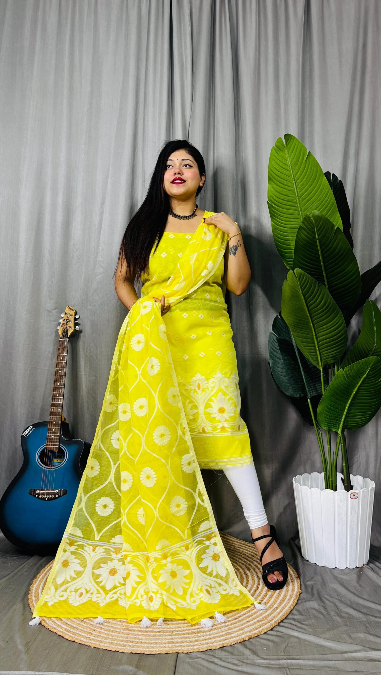 Sunflower Yellow Unstitched 2 Piece Jamdani Suit Set