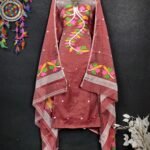 Flower Pink Cotton Unstitched Jamdani Kurti Set