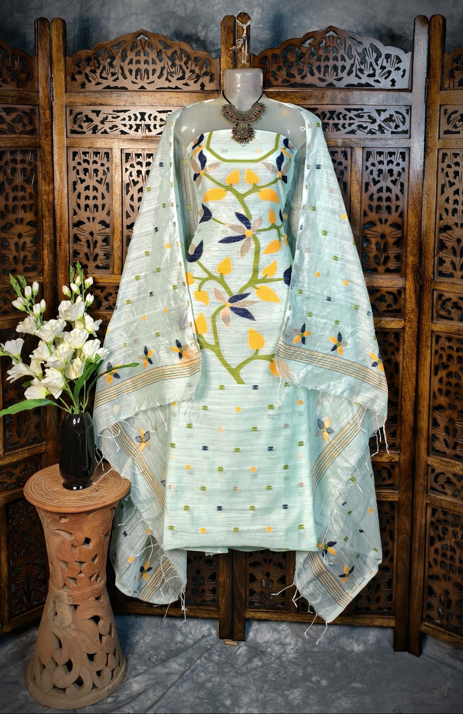 Flower Duel Tone Cotton Unstitched Jamdani Kurti Set