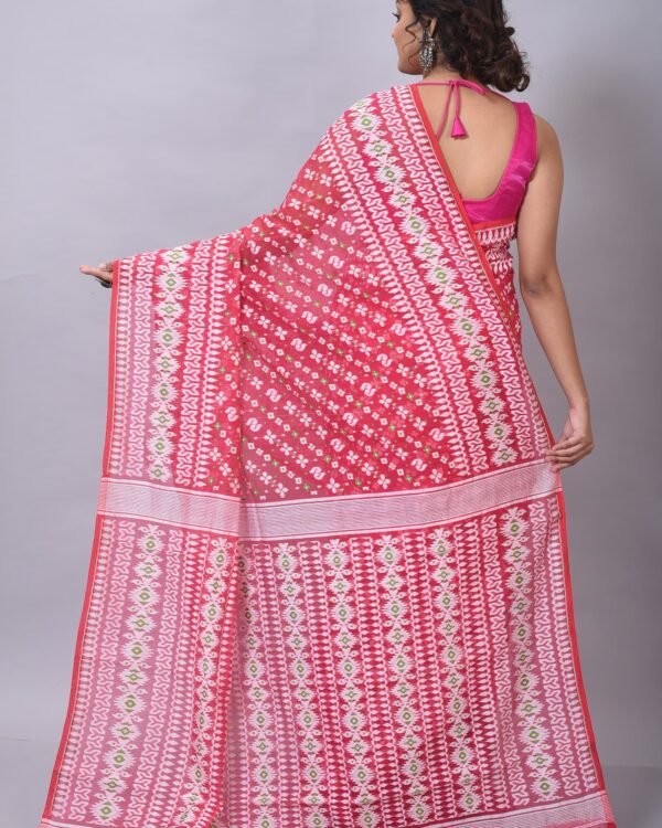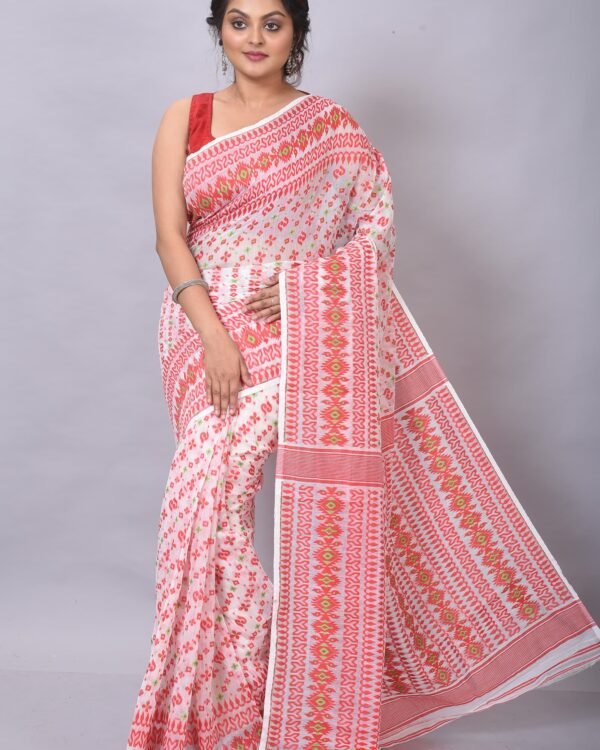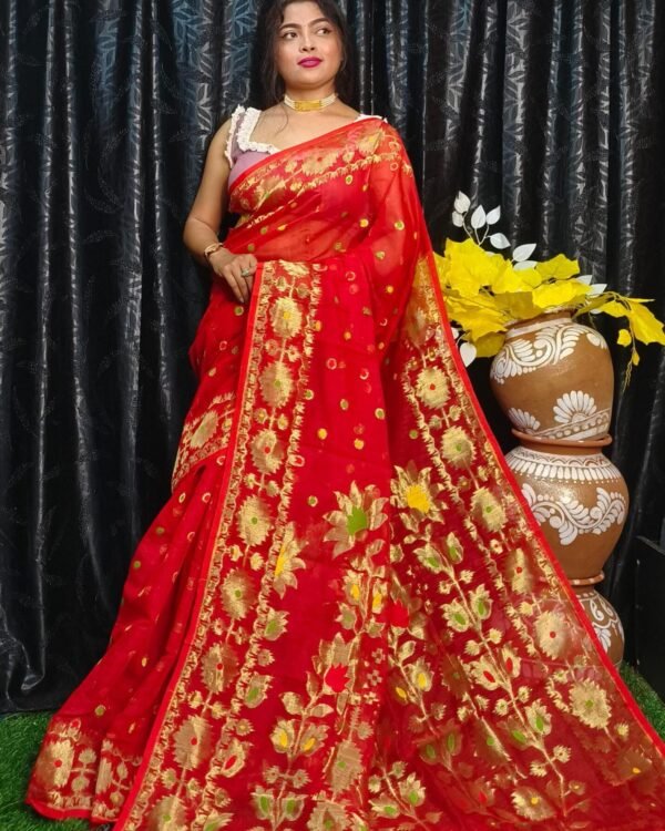 Cadmium Red Soft Joriwork Dhakai Jamdani Saree
