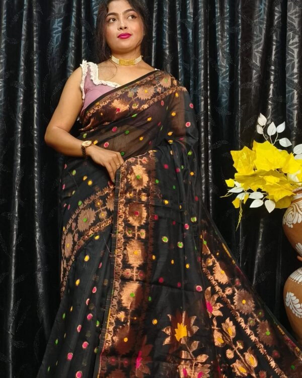 Storm Dust Soft Joriwork Dhakai Jamdani Saree