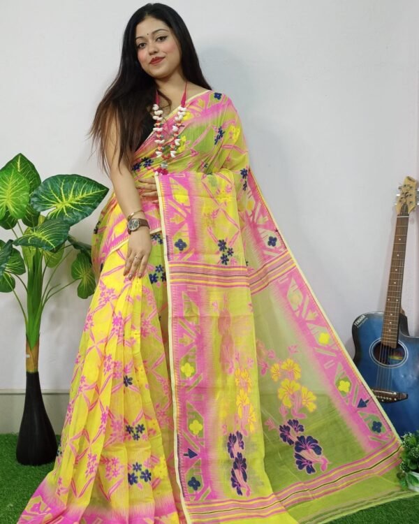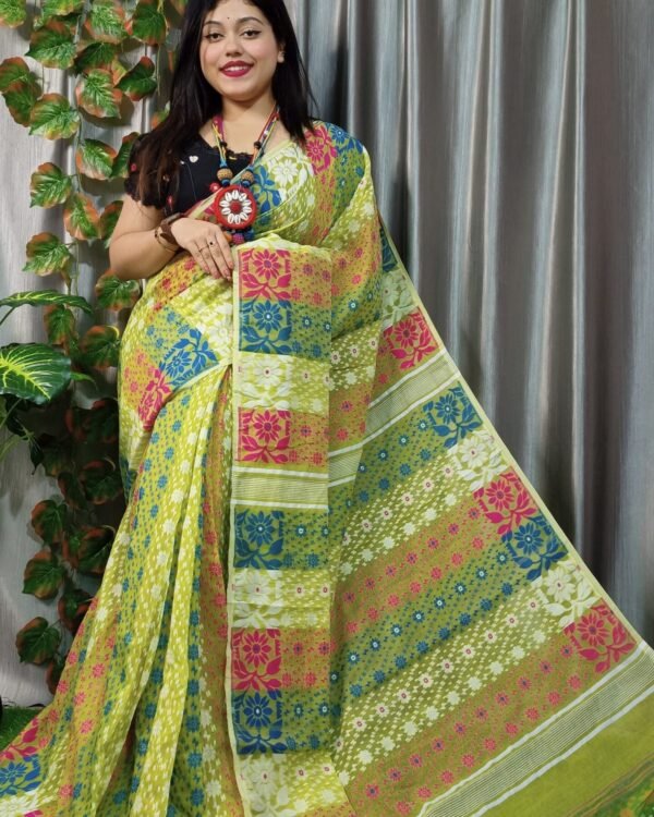 Exclusive Orange Flower Soft Jamdani Saree (Copy)