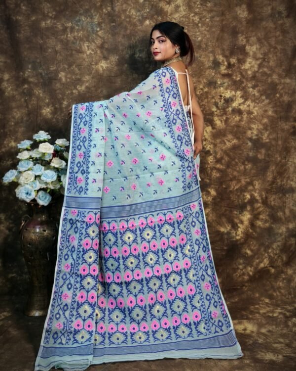 Sky Blue Soft Allpona Dhakai Jamdani Saree
