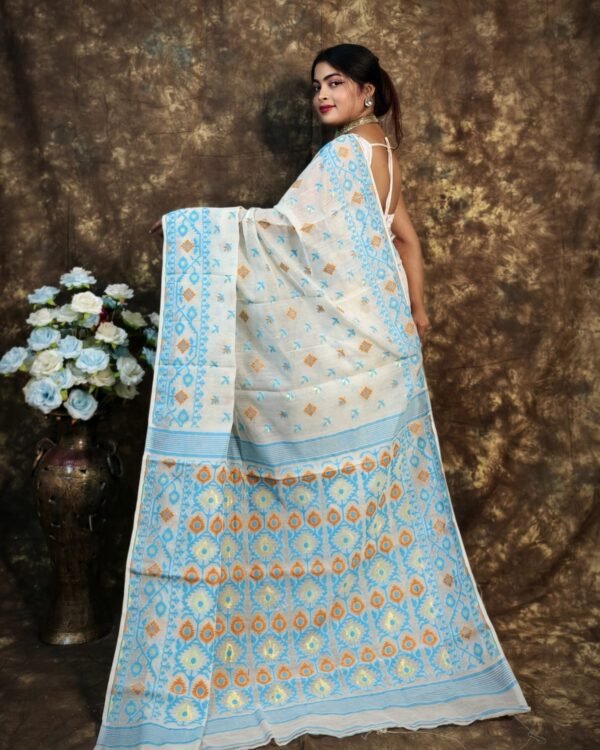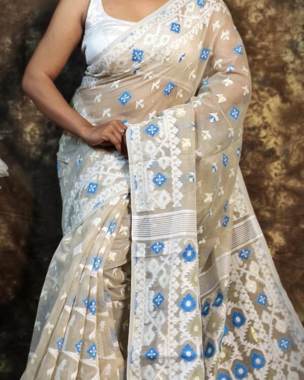 Shubhashini Allover Cream Blue Soft Jamdani Saree