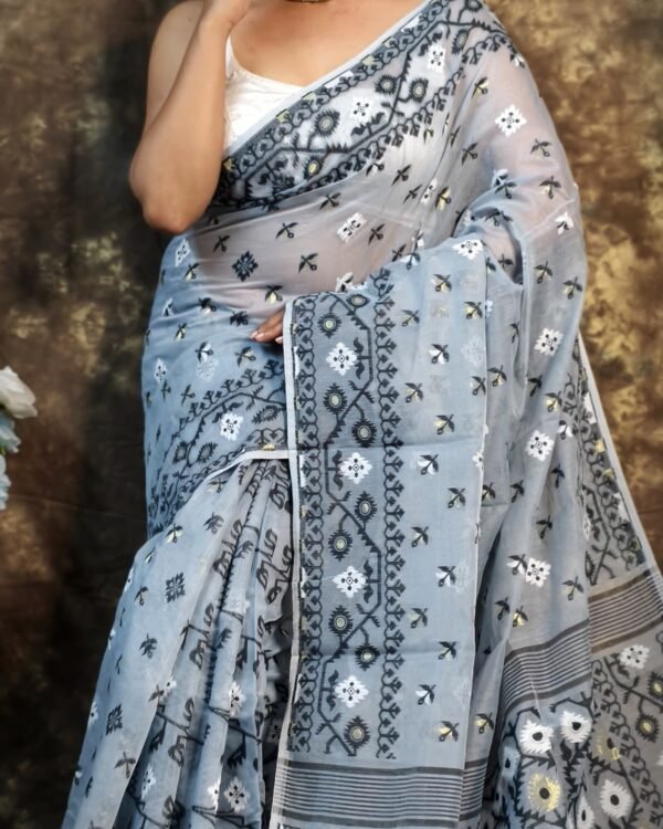 Dark Grey Soft New Jhumko Dhakai Jamdani Saree